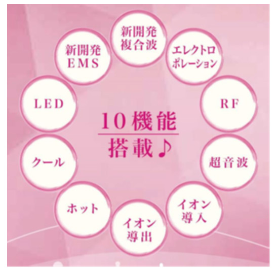 クレンジングから美容成分の導入やタイトニング、マッサージなど毎日の肌のお手入れの10の機能を搭載しています。