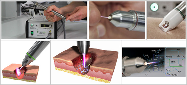 写真の「KINPen MED」, 「KINPen VET」は、地球上の大気圧下、低温な状態(40℃付近)でプラズマを発生させる装置です。